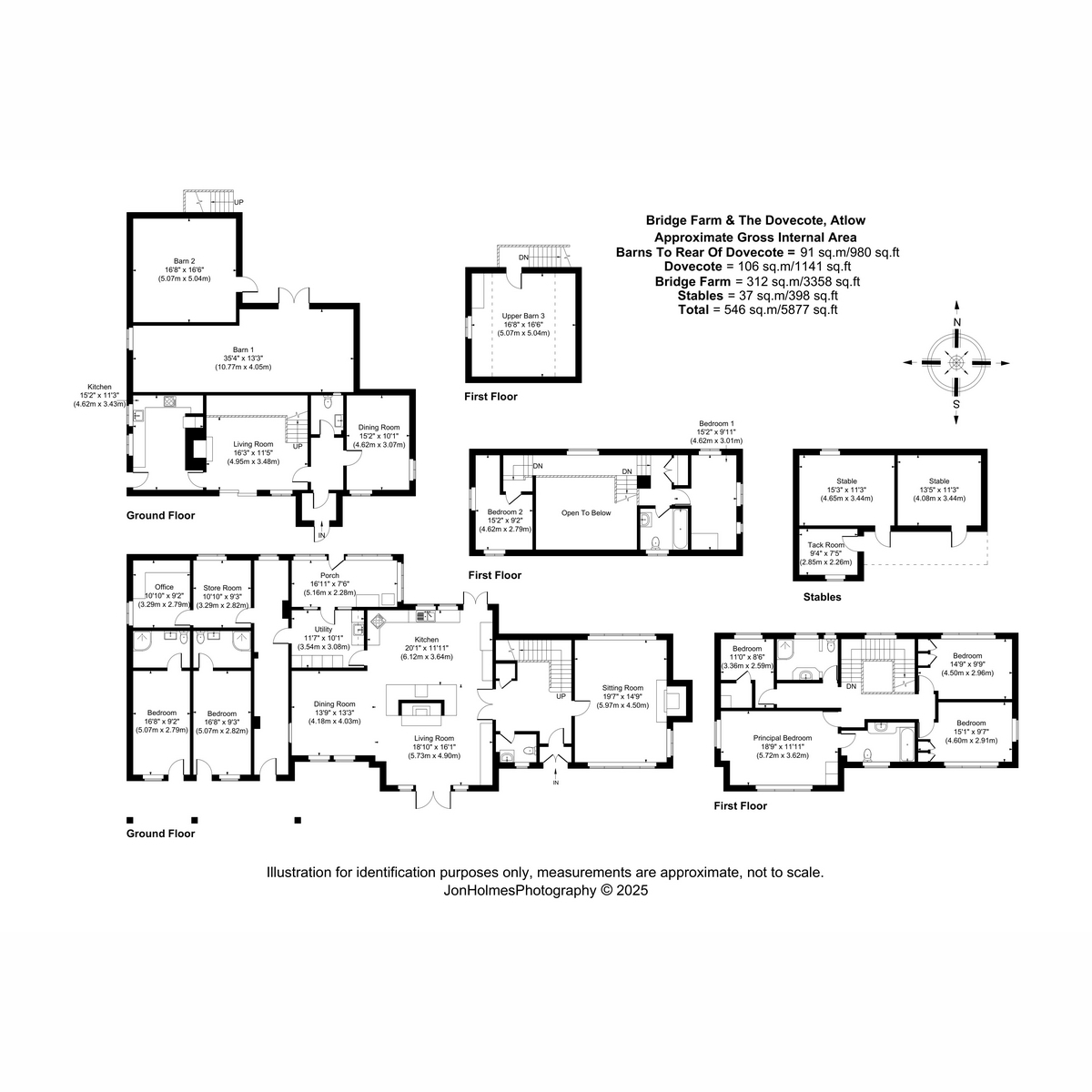 The properties are approached by an idyllic bridge crossing the Henmore Brook, thereafter accessed via an attractive gated entrance, offering an immediate view of The Dovecote and its charming attached barns. From here, a sweeping driveway unfolds, gracefully leading to Bridge Farm, where it culminates in an expansive parking and turning area - perfect for accommodating multiple vehicles with ease.