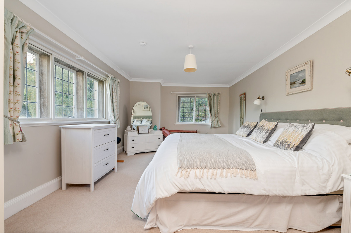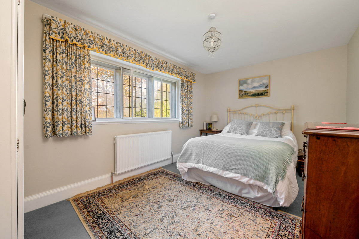 The elegant reclaimed staircase ascends to a spacious galleried landing, where a striking stone-mullioned window frames views over the rear garden. The principal bedroom, bathed in natural light from its dual-aspect windows, offers stunning views of the surrounding countryside and features a private en-suite bathroom for ultimate comfort. Three additional bedrooms provide ample space for family or guests, all served by a family bathroom.