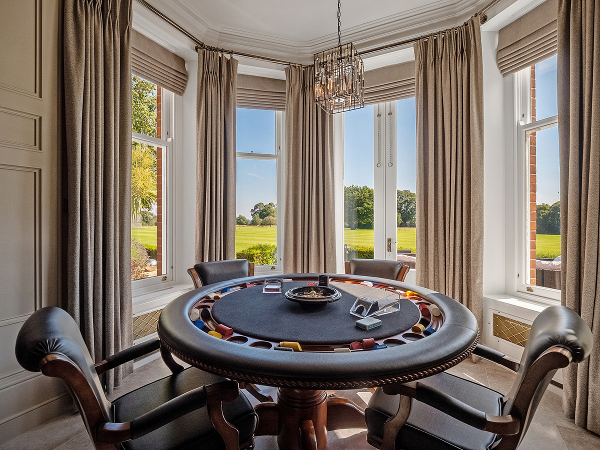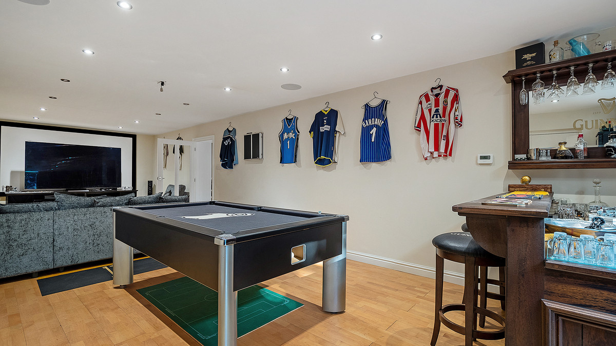 This beautiful property boasts large reception rooms, a stunning open plan kitchen and entertaining space overlooking both the courtyard and the formal landscaped gardens to the rear. The high standard of finishings is evident in the beautiful bedrooms and high-quality bathrooms and the property is ideal for entertaining with it’s fabulous dining hall, cinema room, and glass garden room. Bringing the outside in, the garden room incorporates an outdoor kitchen, and spa and sports facilities perfect for entertaining family and friends.