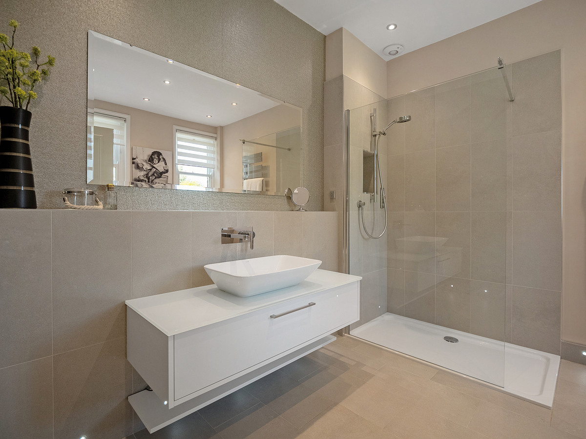 To the end of the hallway is another very good size double bedroom with its own ensuite that also boasts a separate bath and shower. The first floor also features another large double bedroom with modern fitted wardrobes and ensuite bathroom again with separate bath and shower and Vitra sanitaryware.