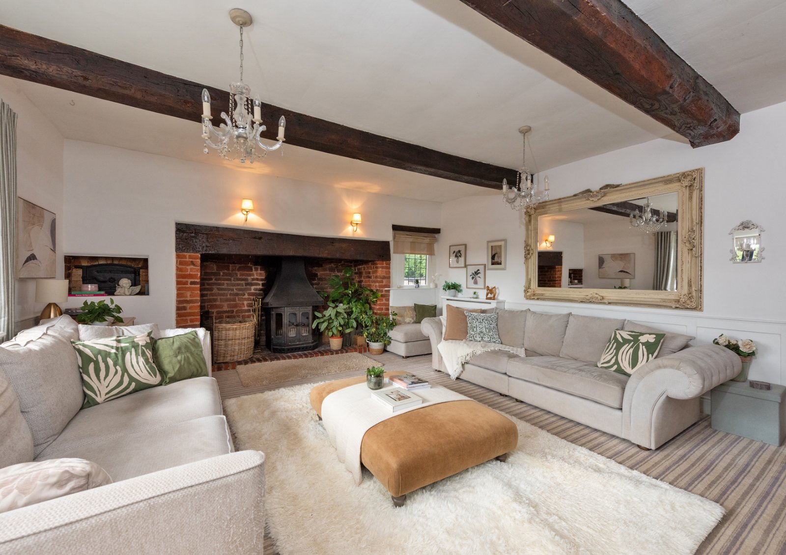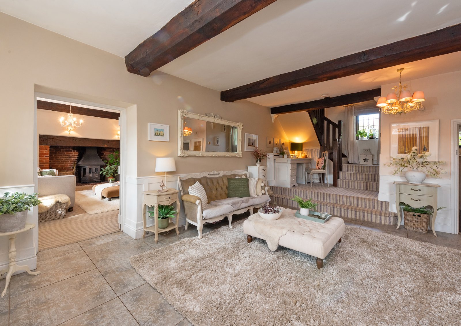 • Dual aspect sitting room with large inglenook fireplace with a Dovre wood burning stove