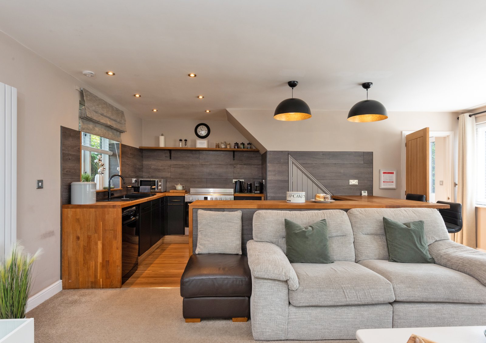 • Finished to a high standard throughout the contemporary accommodation comprises, on the ground floor, an open plan kitchen/sitting room with patio doors to the garden, fully equipped kitchen with integral appliances, separate dining room, a spacious double bedroom with doors opening out to the front of the property and a shower room with walk in spa shower