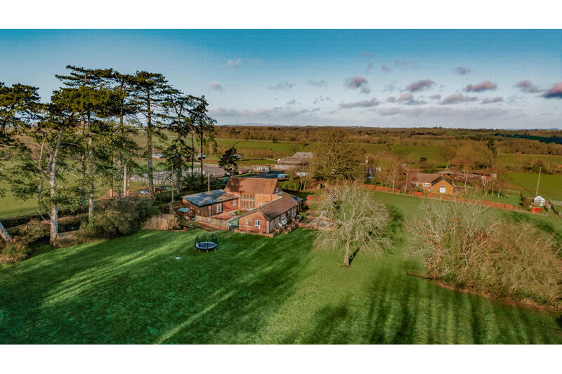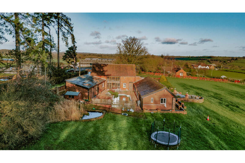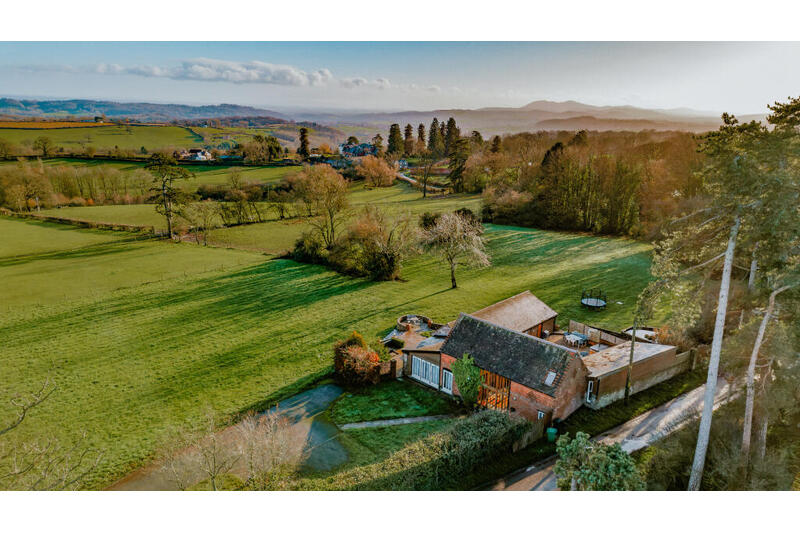 A characterful converted barn enjoying breathtaking, far reaching views across the valley, with five bedrooms, indoor–outdoor living, a swimming pool and over two acres of grounds in the Herefordshire countryside.