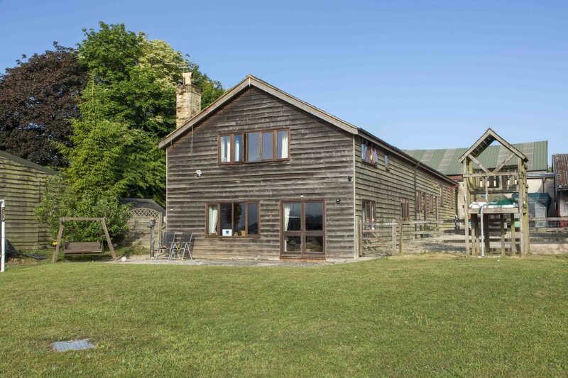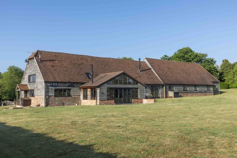 Fawley House (1) - A remarkable 10 bay timber framed barn under a tiled roof, with extensive open plan reception areas designed for entertaining, 5 bedrooms and 4 bathrooms. Gardens with wonderful views over the Downs.