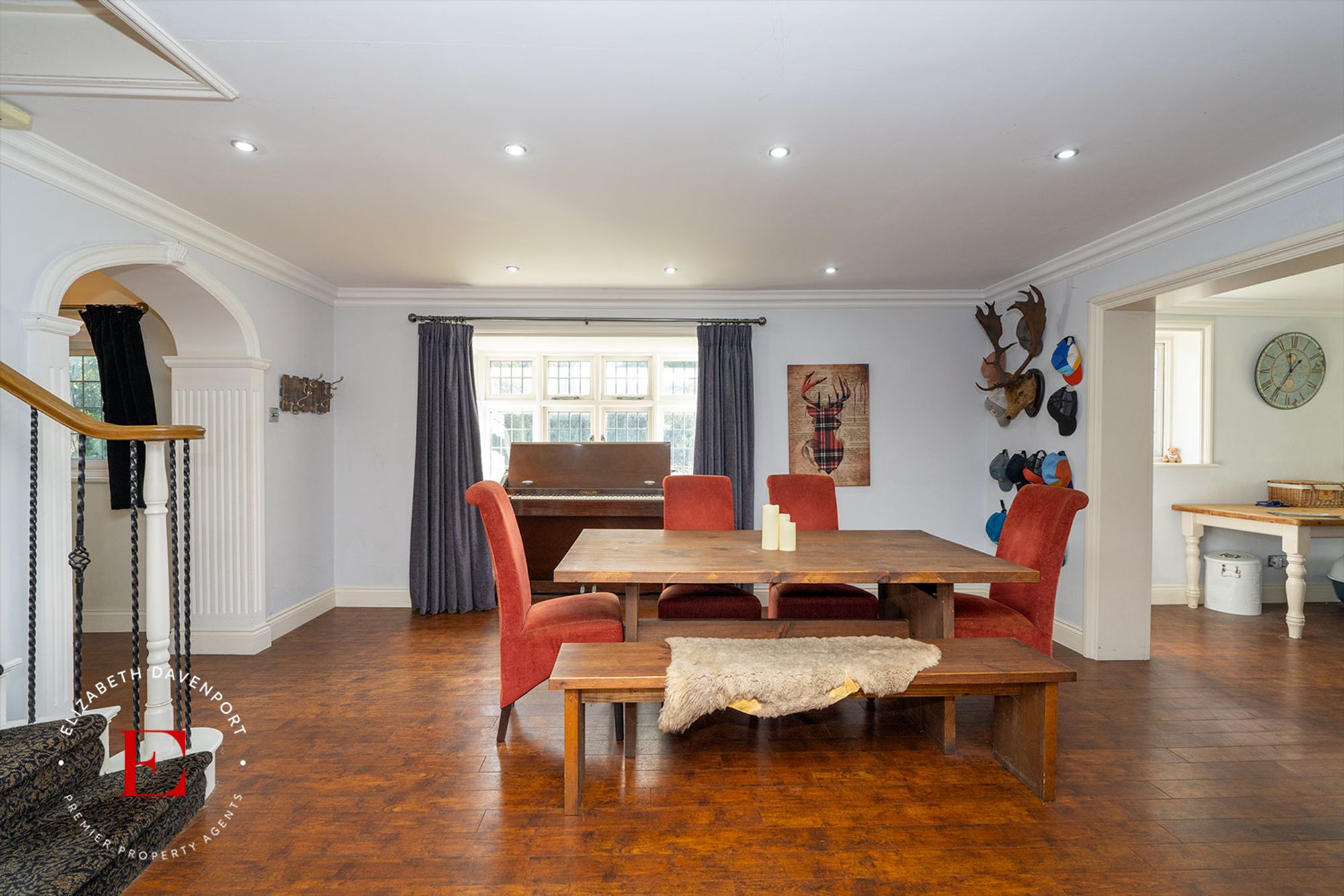 Offering over 3,200 sq. ft. of accommodation, this impressive residence features multiple reception rooms, including a large sitting room, dining/family area with log burner, snug, and an L-shaped orangery with bi-fold doors. The modern open-plan kitchen includes a central island, granite worktops, gas fired AGA range and a utility room, with underfloor heating throughout the ground floor.