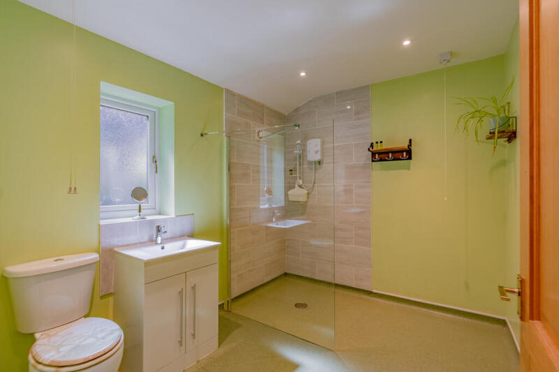 The detached timber-clad cabin sits beyond the rear of the house, currently arranged as a games room with great versatility for entertaining. Offering a spacious open-plan layout with a modern shower room, it is perfectly suited for guest accommodation and has excellent potential as an Airbnb. Its position provides privacy while remaining easily accessible from the main house, making it a valuable addition.